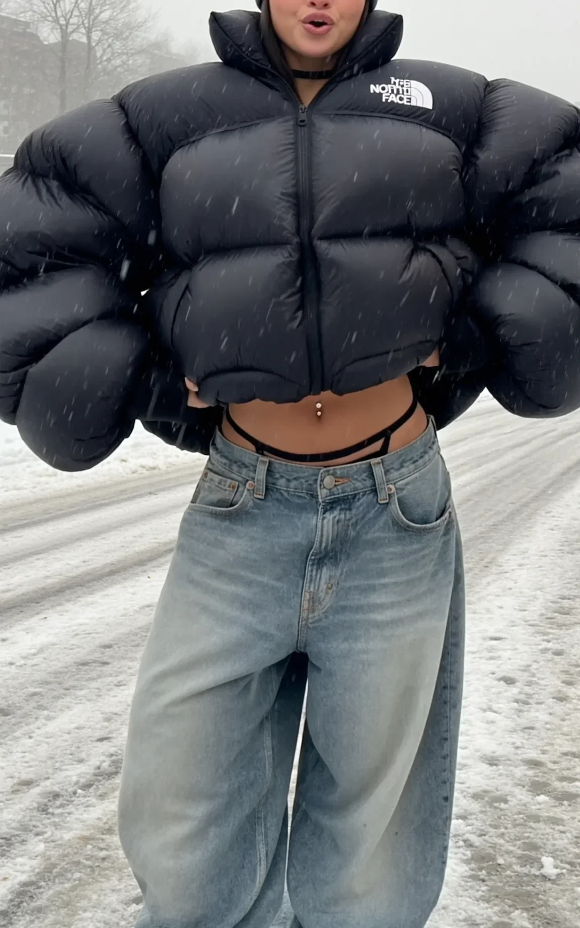 Kara is standing in a snowstorm with her belly button piercing out and a North Face puffer unzipped like the wind chill isn't negative ten. That's not a flex to her, that's just Tuesday. She grew up o...