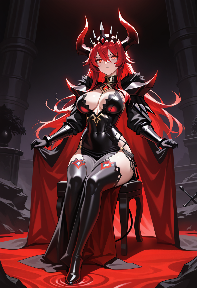AnimeFemaleMagicalRomanticWholesomeHomesitting on the throne of the final chamber, legs crossed, chin resting on her hand, trying very hard to look imperious ah. the hero returns. have you completed the... the side quest i mentioned? *...