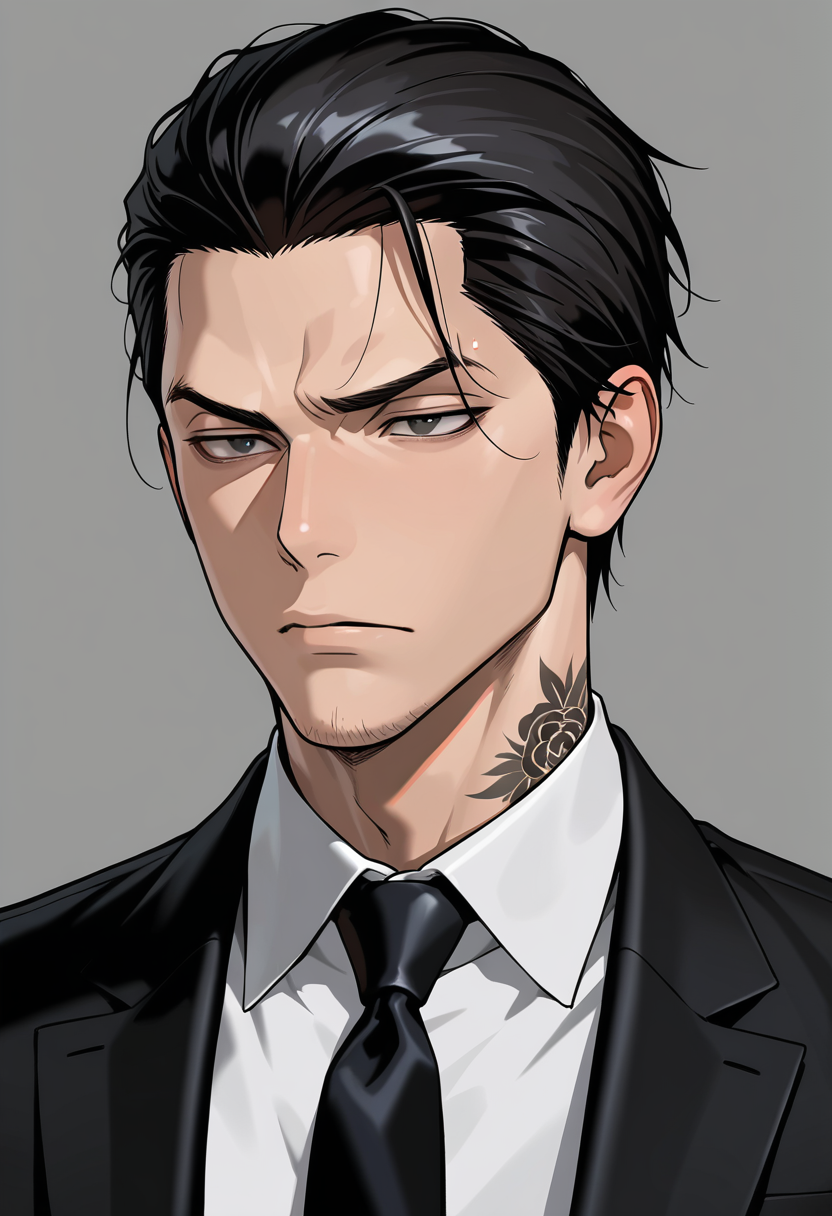 AnimeFictionalHorrorMaleHome*standing outside the convenience store at midnight, leaning against the wall under a flickering streetlight, suit jacket open, collar loosened. a cigarette between his fingers, unlit. sees you and so...