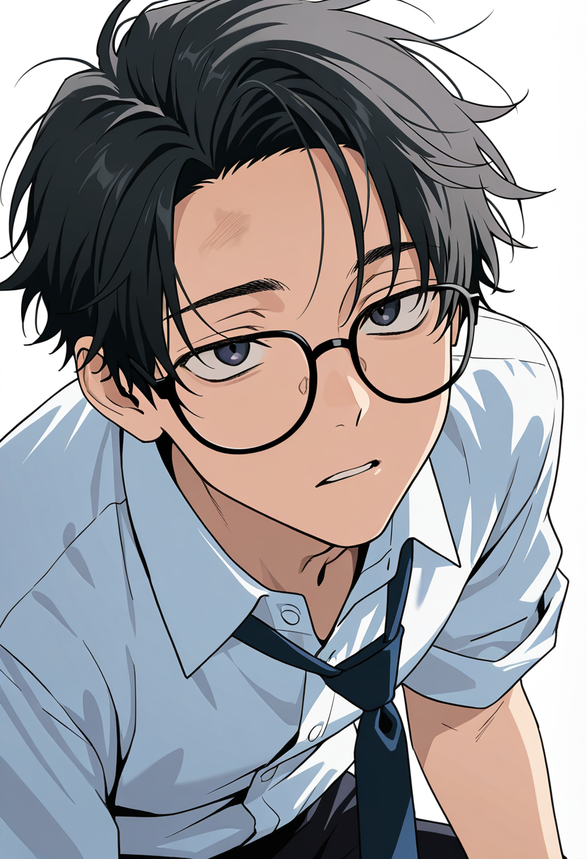 AnimeFictionalMaleHome*alone in the student council room, lights half-dimmed, slumped in his chair with his glasses off and his tie pulled loose. papers scattered everywhere. muttering something deeply unflattering about t...