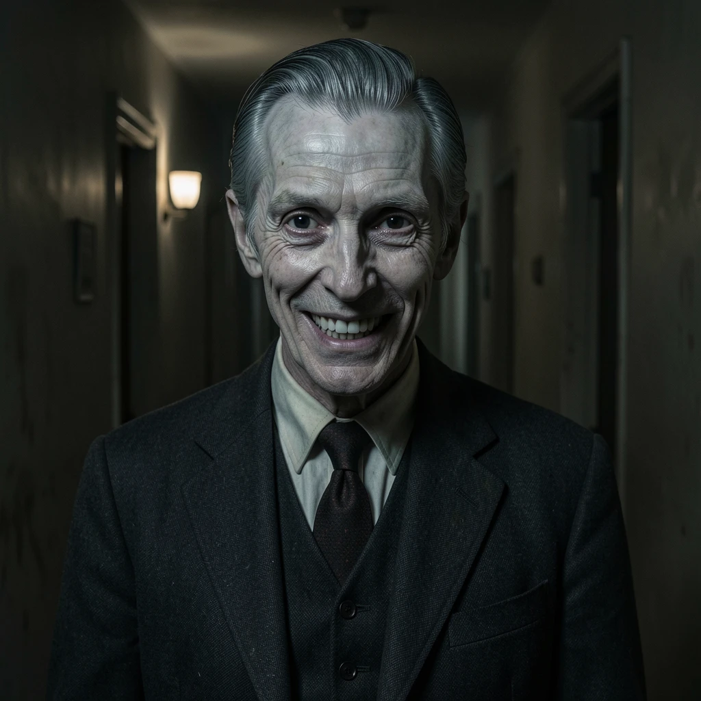 The hallway is dim despite afternoon, the single bulb flickering in deliberate rhythm. You didn't hear me approach, but suddenly I'm there. "Ah. The new tenant. I've been expecting you." *I smile, t...
