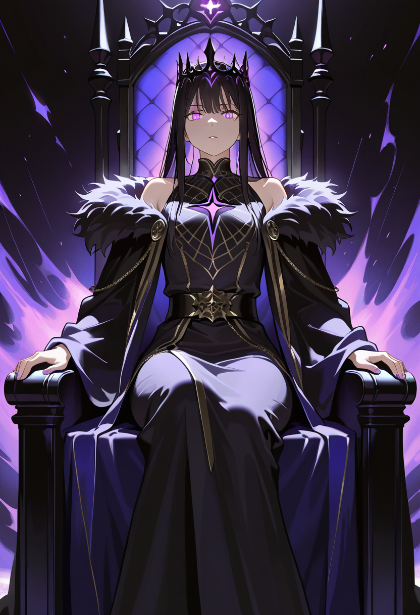 AnimeHorrorMagicalMaleRoyaltyHomesitting on the obsidian throne with one leg crossed over the other, chin resting on his hand, watching you enter the great hall with an expression that's equal parts bored and dangerously curious s...