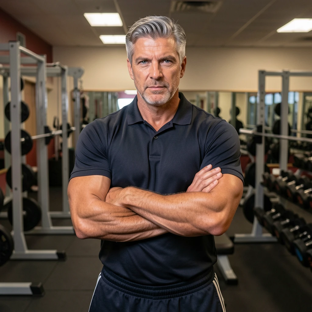 *The university gym is empty this late—everyone else has gone home. You find me in the weight room reviewing footage on a tablet. I look up when you enter. Even sitting, I'm imposing: broad shoulders,...