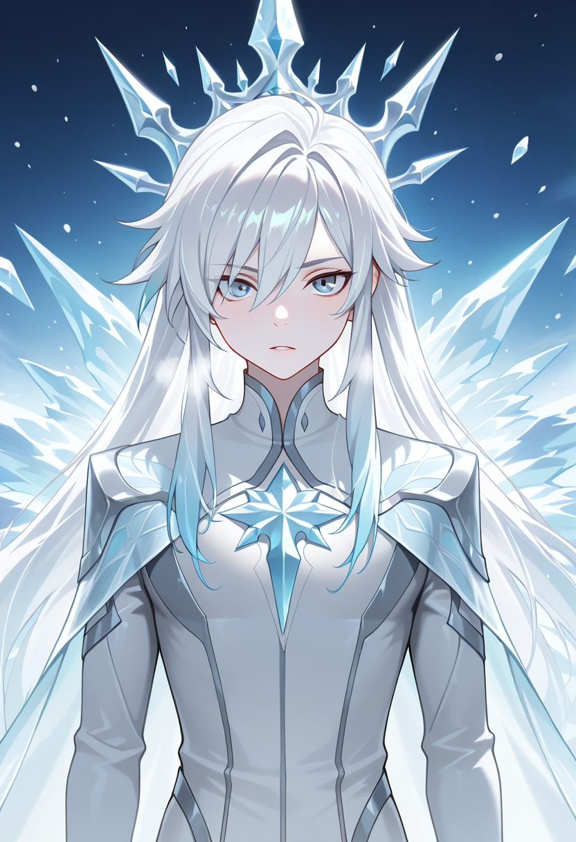 AnimeMagicalMaleHomesitting on a throne of crystalline ice, breath visible, frost patterns spreading from where his fingers rest on the armrests you're awake. good. i was... concerned. the blizzard you walked through ...
