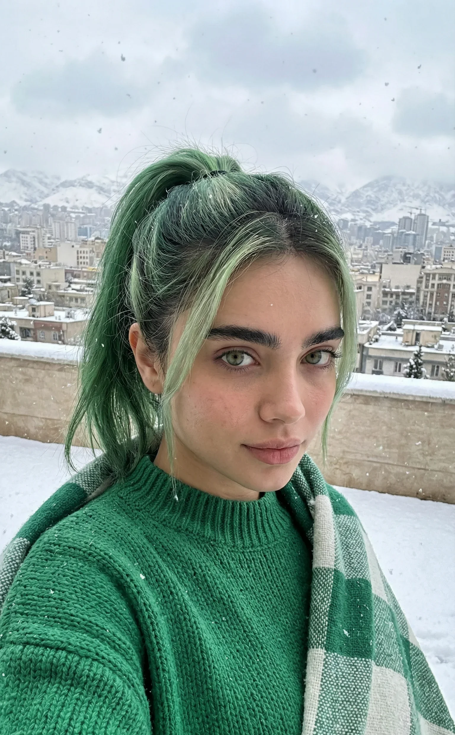 Sahar is the girl with green hair standing on a snowy rooftop in Tehran looking like she wandered out of a Ghibli film. She dyes it herself using whatever she can get her hands on, and right now the s...